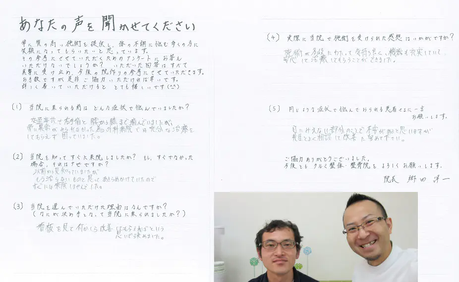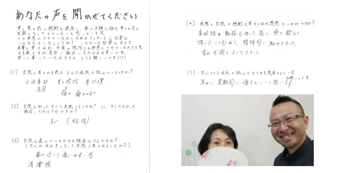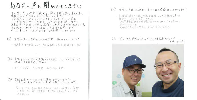 「結果のでる施術を受けたい」という方から「後遺症を残したくない」「治療は終わったのに後遺症が残ってしまった」という方も多く通われています。